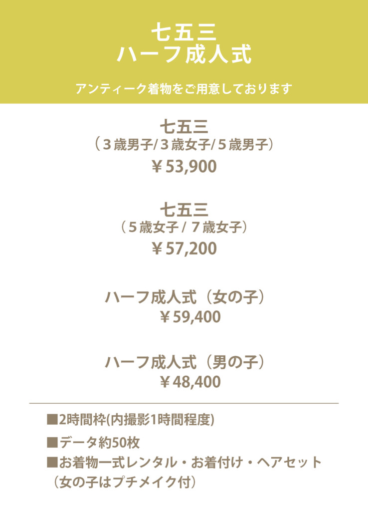 (主役のお子様以外でお着物をご希望の場合は、お早めにご相談くださいませ。)